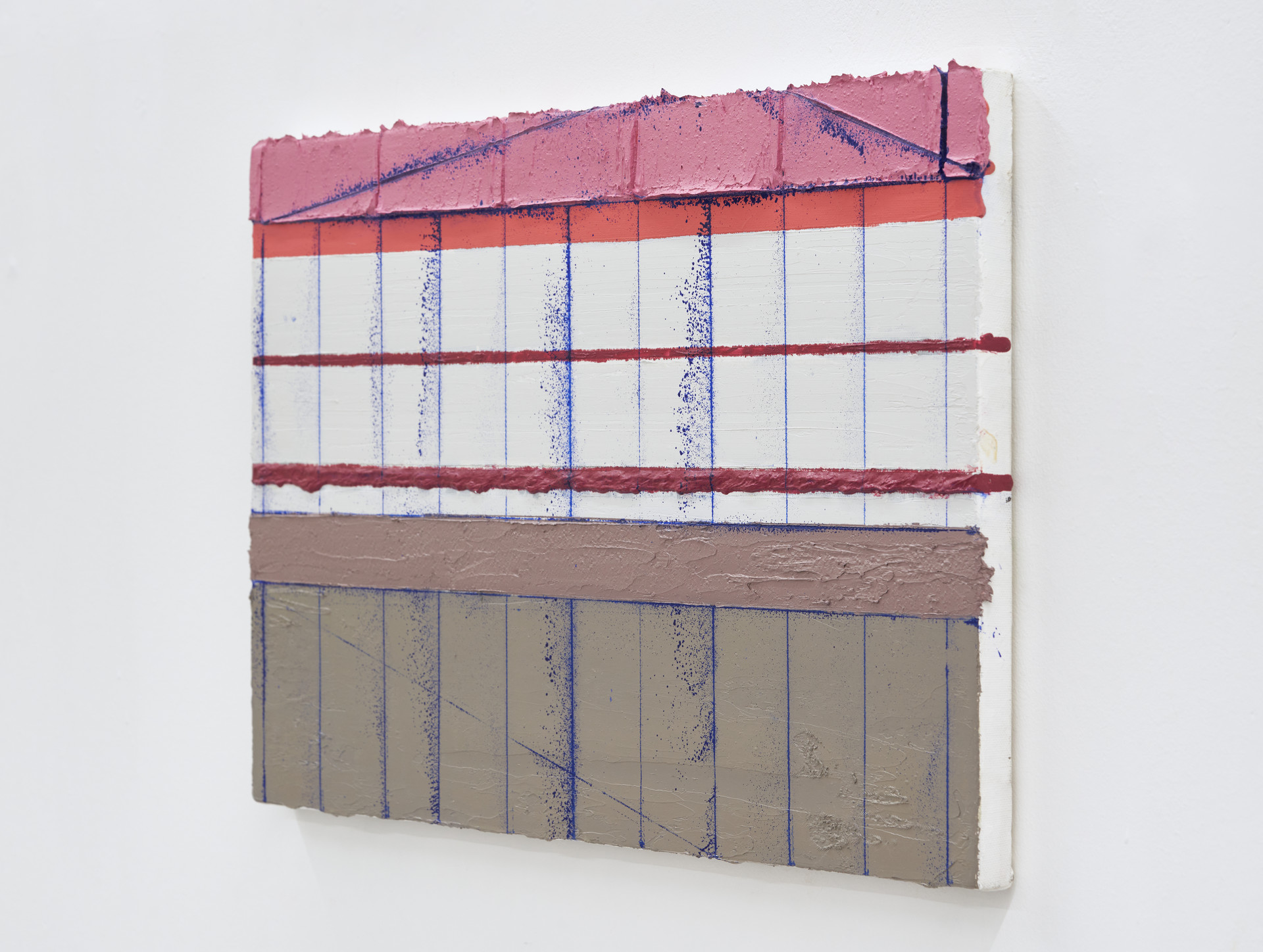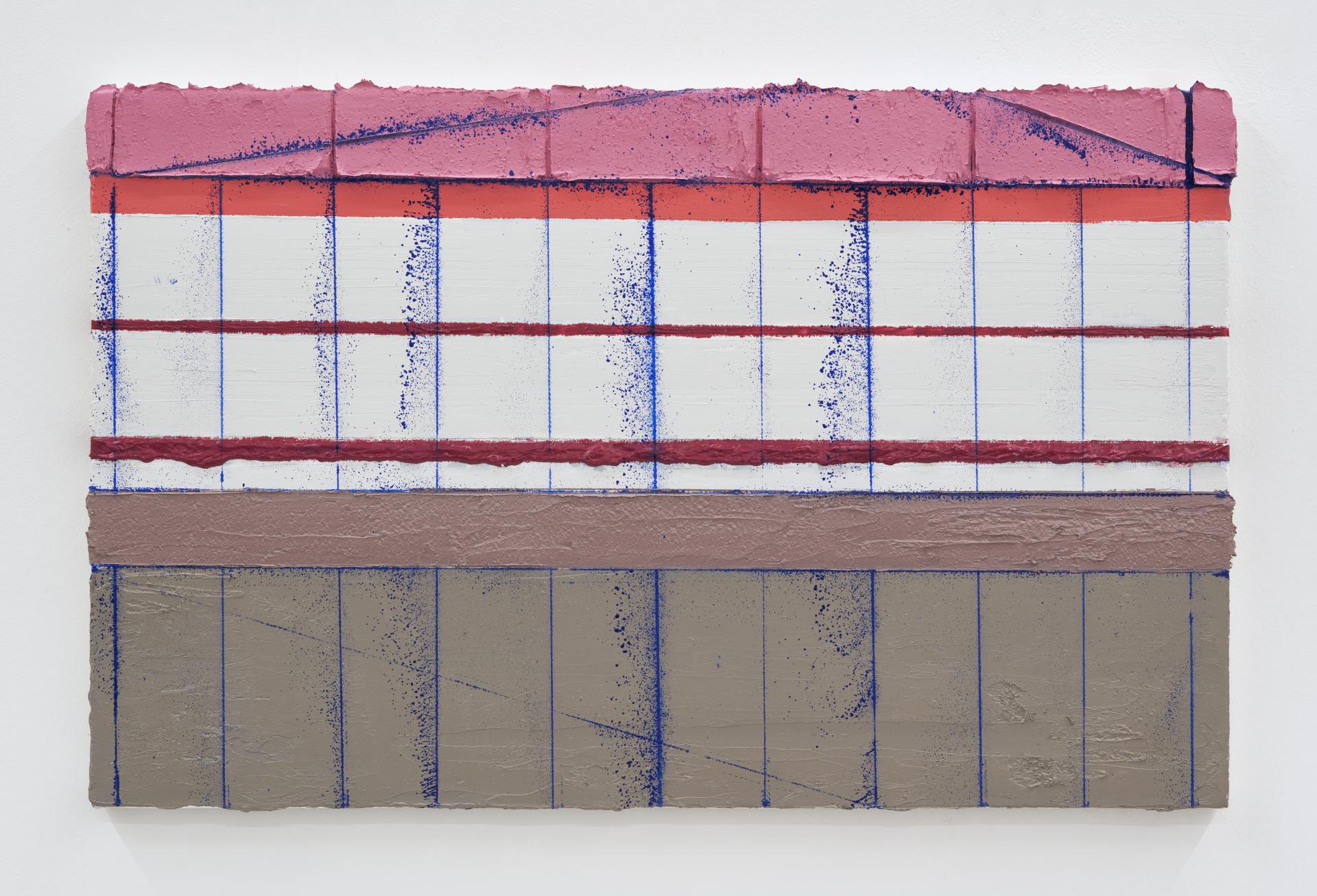 <옹벽>, 2023, 캔버스에 유화, 왁스, 알키드, 먹줄, 33.4 × 53 cm