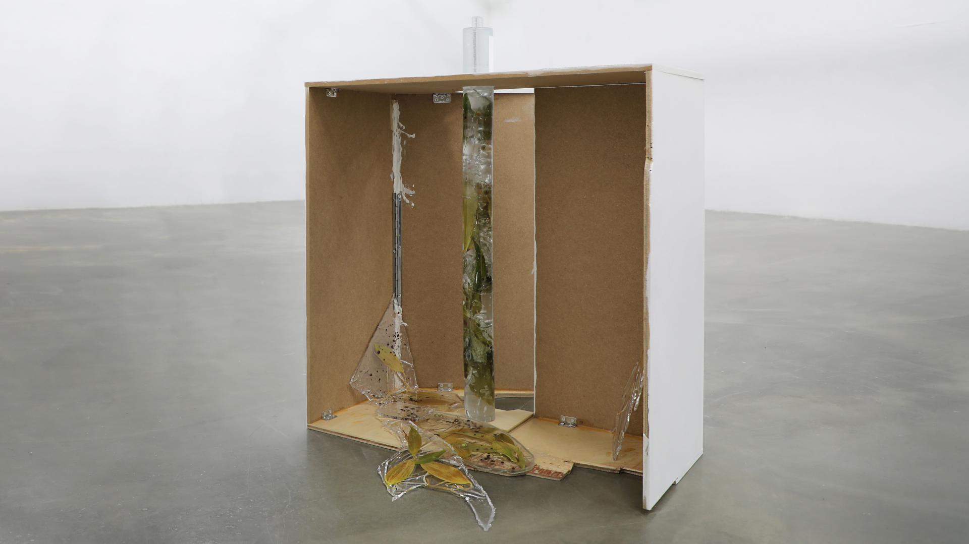 나무, 금속, 은방울꽃잎, 레진, 종이에 프린트, 78.5X55.5X117cm, 2022